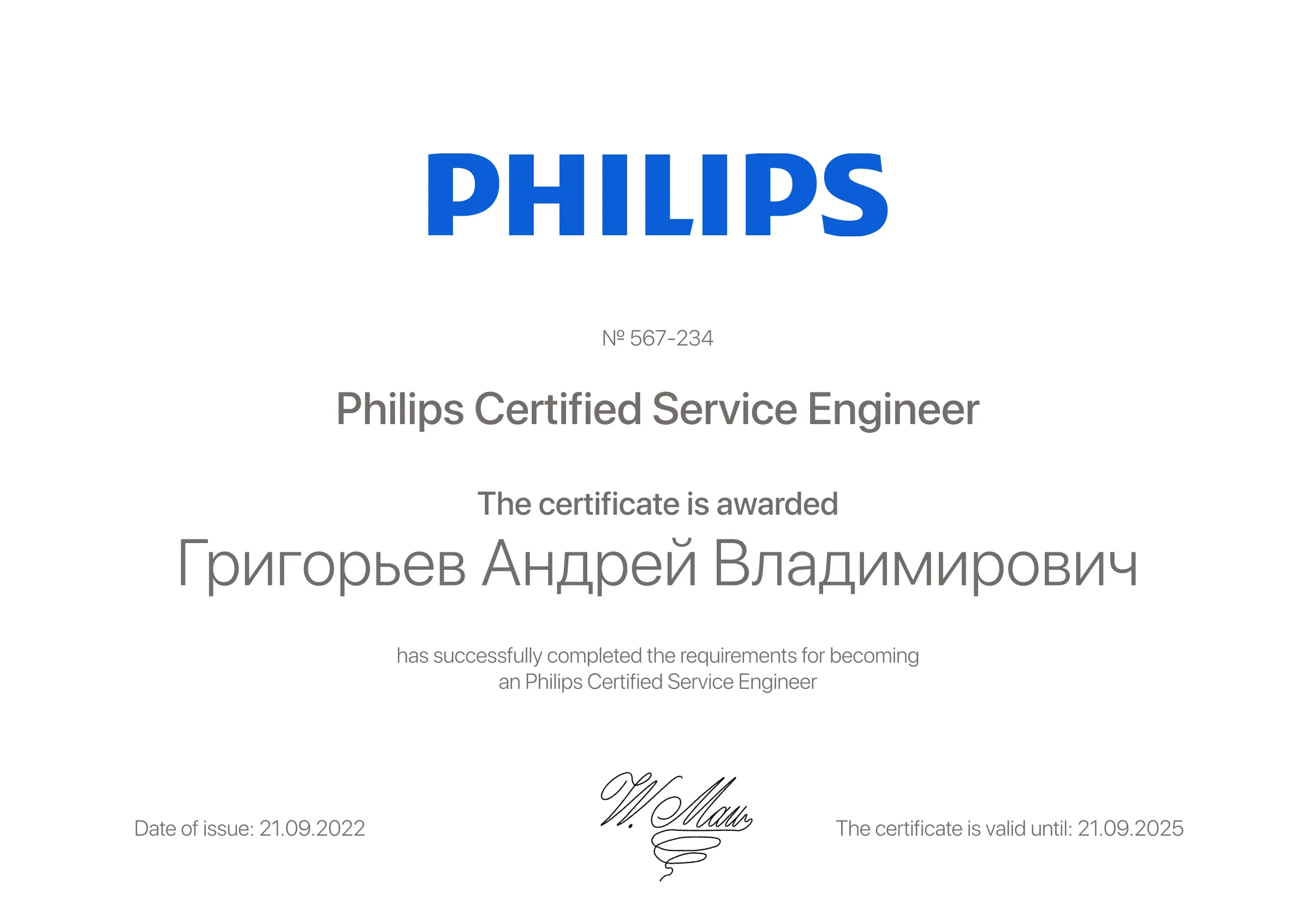 Стаж работы мастером в сервисном центре Philips: 5 лет